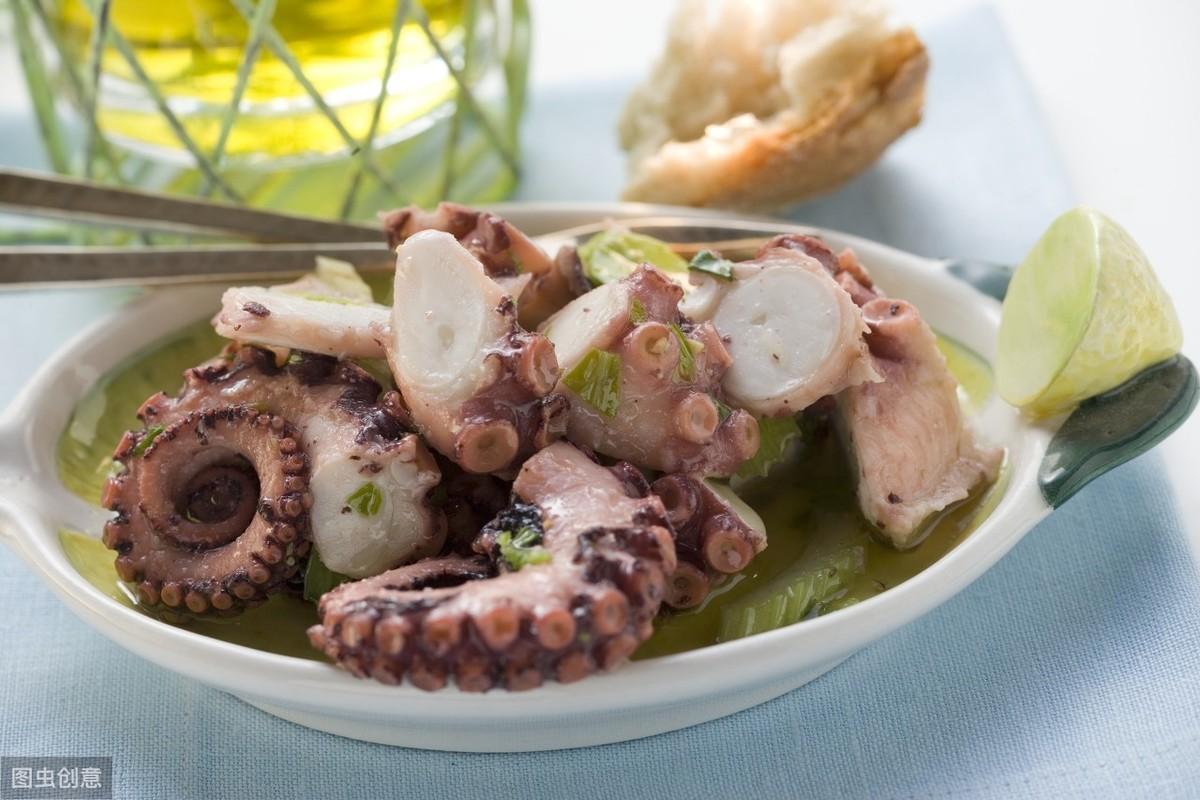 3.章鱼,公的里面有黄,而母的墨鱼汁中有籽,吃的话都要煮的,一般都是煮熟了之后,蘸醋进行食用的,章鱼的营养价值高,带有着丰富的蛋白质还有矿类物质。