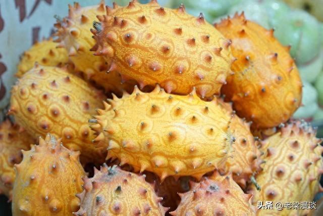 刺角瓜:又称非洲角瓜、火参果等,属于葫芦科黄瓜属。刺角瓜原产于非洲,现世界各地均有栽培。