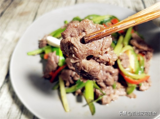 牛肉洗净,切成丝。西芹和干辣椒切丝。起锅,烧油至六成热,下肉丝煸炒至快干时,加干辣椒炒成棕红色。再加上花椒、姜丝、豆瓣炒香,烹料酒翻炒上色。放入西芹,调入胡椒粉煸熟,淋香油、花椒油翻炒均匀。最后加入味精提味即可出锅。