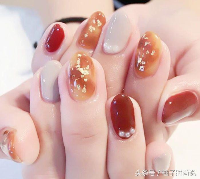 琥珀色是很好看的颜色,比较精致的,看起来也比较复古,特别是和红色搭配在一起,看起来也非常暖,用小珍珠和亮片来修饰,偏灰色的颜色来衬托,有没有感觉很小仙女呢?