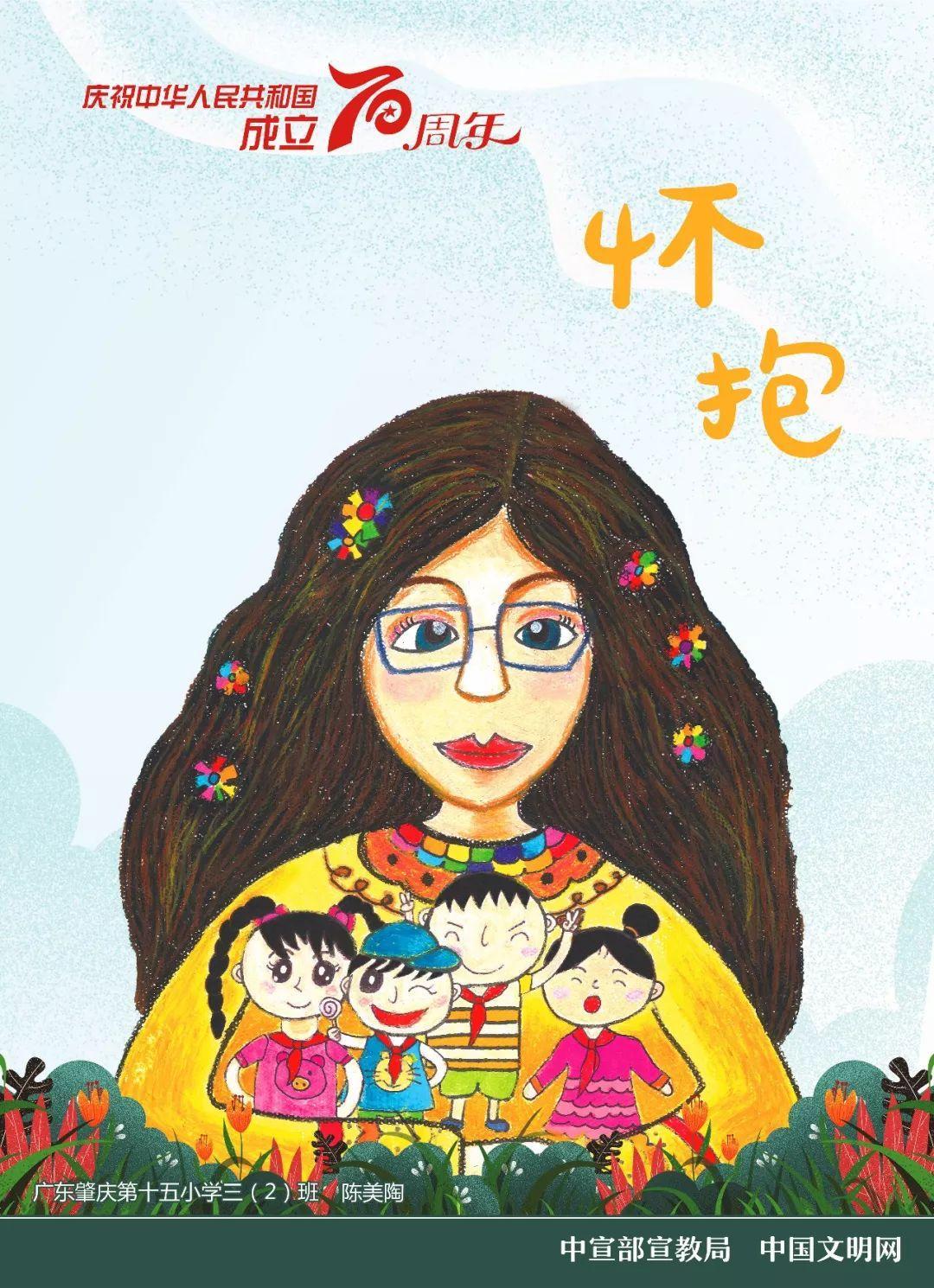 中宣部宣教局、中国文明网联合发布以庆祝中华人民共和国成立70周年为主题的9幅儿童画公益广告。