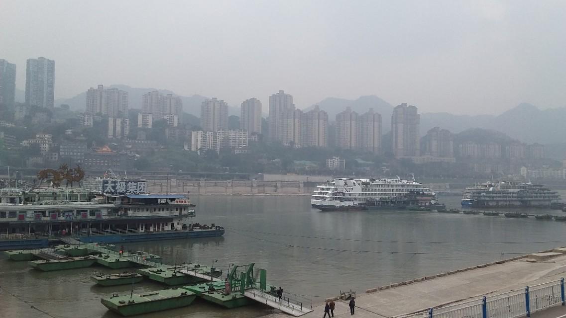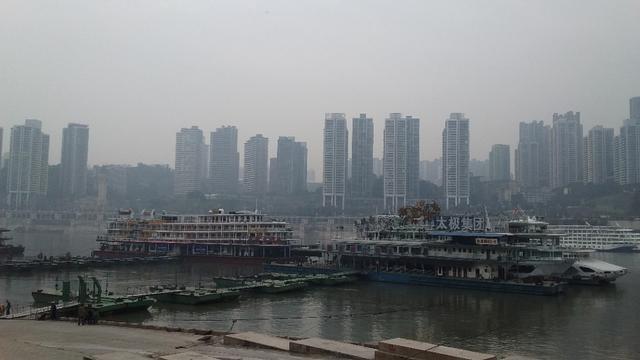如今的朝天门码头功能更多是中、外游人观赏两江环抱的重庆半岛,山水相映、百舸争流。两江交汇之后,长江声势也益发浩荡,穿三峡,通江汉,一泻千里,朝天门码头在林立的高楼大厦的映衬下,显得特别矮小,原来的交通枢纽似乎被人渐渐地遗忘,过往只依稀停留在记忆中,没有了岁月的味道,那就让我们用心应景地感应历史长河的浩浩荡荡吧。