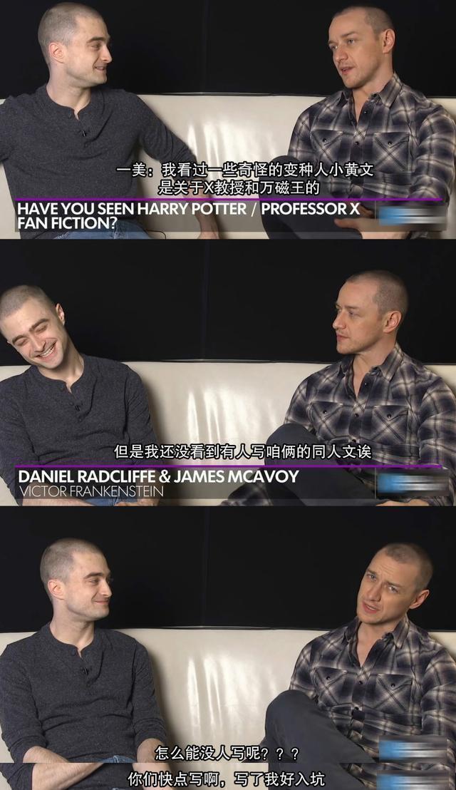 詹一美很坦然地说:"我倒是看过一些关于X教授和万磁王的一些奇奇怪怪的变种人同人文,但是我还没看到我和丹尼尔的同人文。"