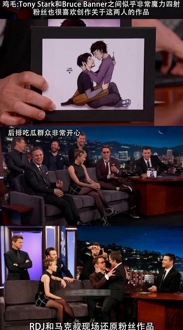 在节目现场,RDJ和马克叔还现场还原了粉丝画作中的互动。真实的,正主们往你嘴里灌糖让你吃到齁的操作啊!