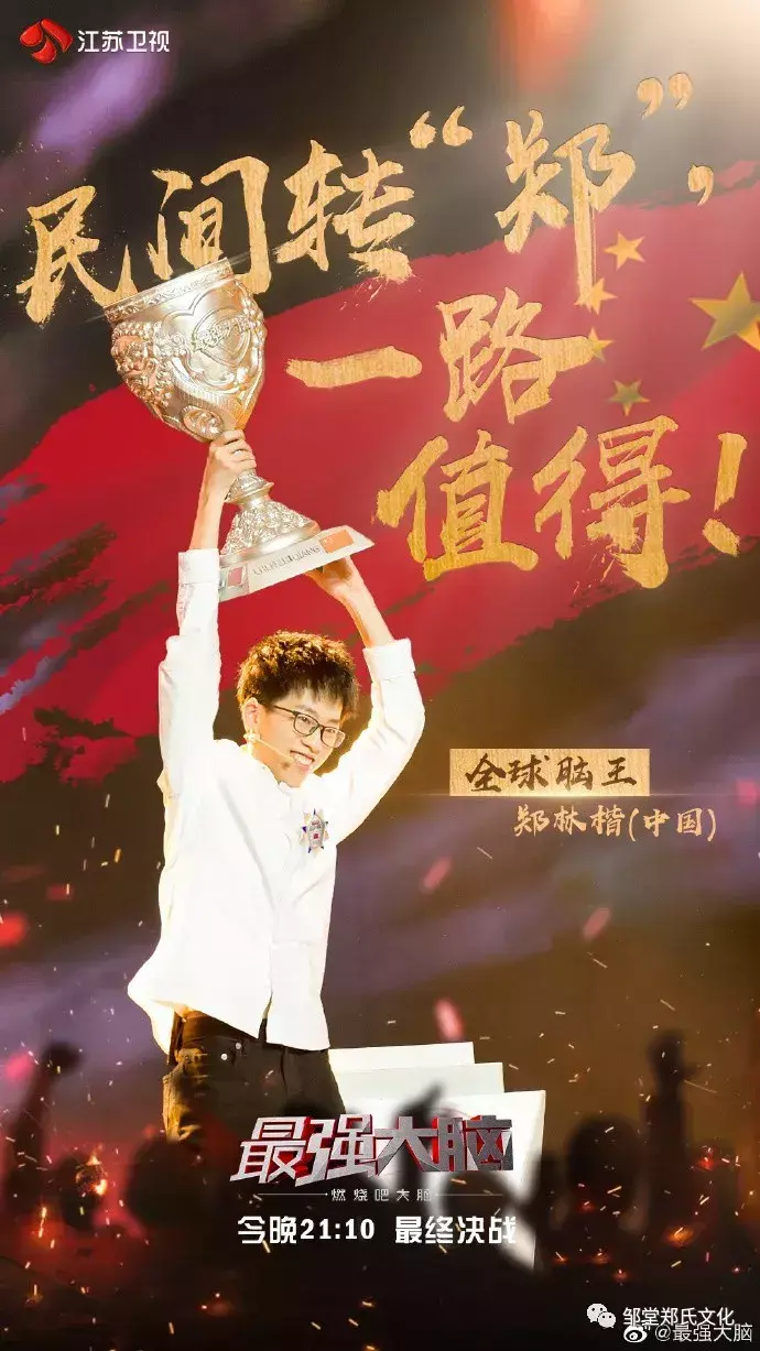 近日,江苏卫视热播栏目《最强大脑》第六季经过激烈残酷的比拼,中国战队清华学霸郑林楷强势夺冠,成为”全球脑王“!