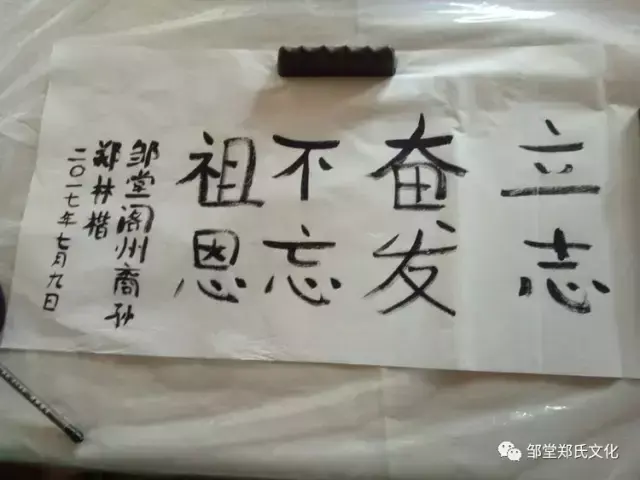 郑林楷于邹堂郑氏祖祠书写“立志奋发不忘祖恩”