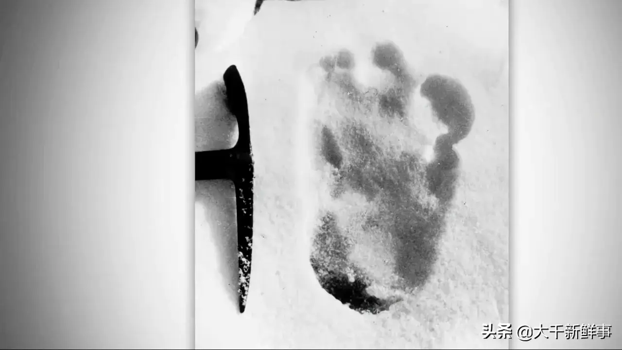 1951年,一支英国探险队在珠穆朗玛峰上拍到了雪人的脚印照片,这脚印是在坚硬冰面的薄薄一层雪上留下的,长31.3厘米,宽18.8厘米,拇指很大向外张开。