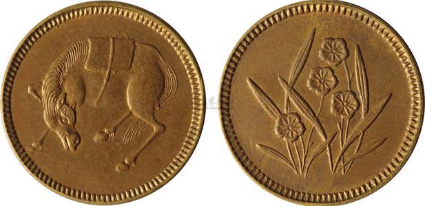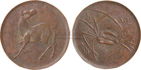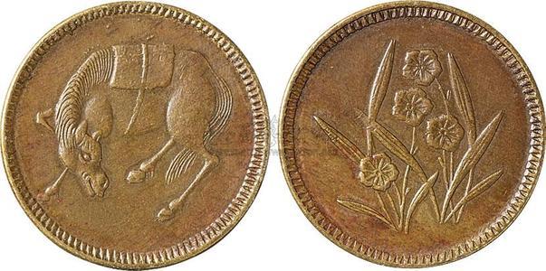 而背面是一束“兰花”,花的叶片因错落有致地向四周舒展。亭亭玉立了别有一种幽淡清孤的风韵。马兰钱因此得名。 其实马兰钱还拥有非常多的版别正面除了有各式各样的骏马以外,还有鸟、牛、蝴蝶等动物图案。马兰钱只有极少数的铸有文字和数字的钱币,铸有年代的钱币便更为稀少了。并且背面也不止有兰花,还有其他的梅花、菊花、以及嘉禾图。