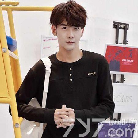 这一款男生短发真的好可爱!鬓角铲掉+厚重刘海搭配,修颜之余又倍显萌萌哒,特别适合大学生男选择,再染上一款低调的棕色接近黑色染发,低调不失帅气。