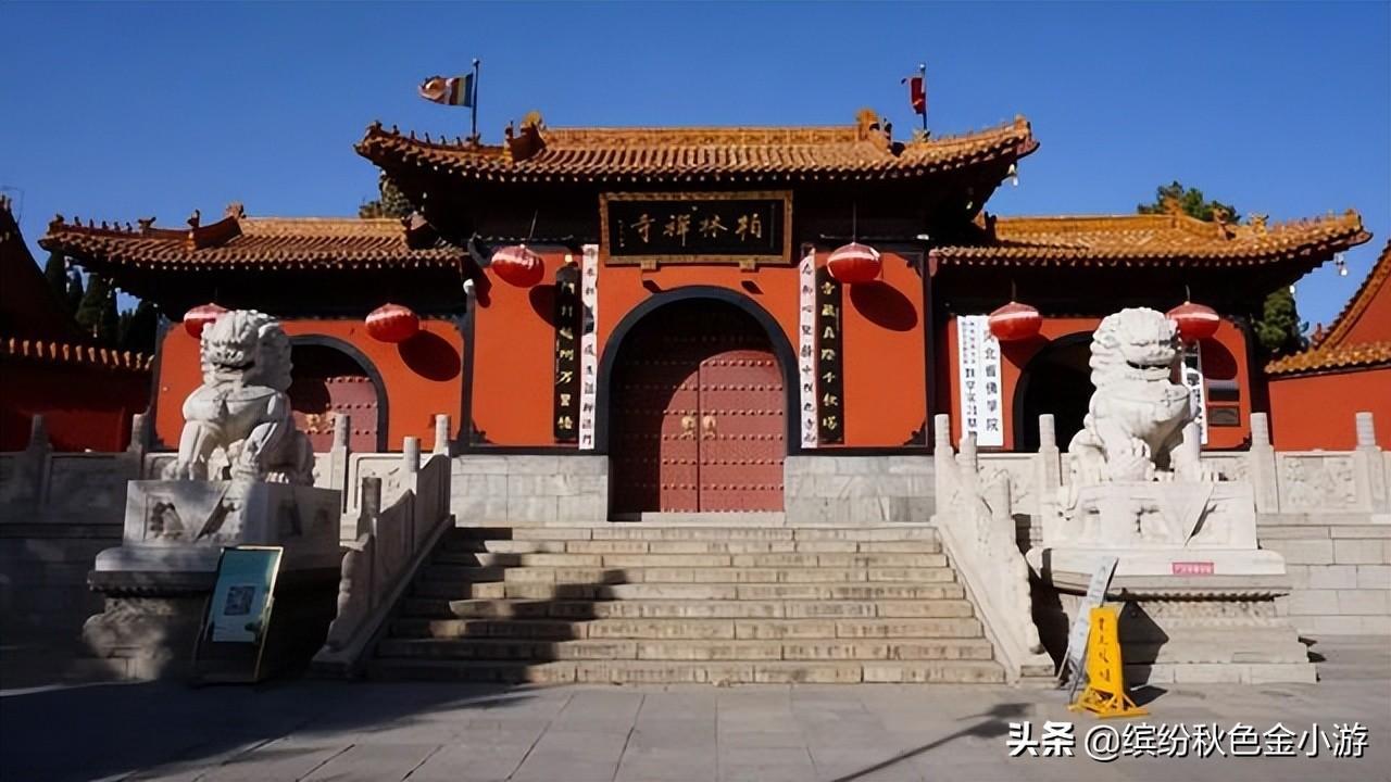 4、柏林禅寺。位于石家庄市赵县石塔东路。该寺建于汉县的建安年间,玄奘在西行印度取经之前曾来此从道深法师研习,寺内主要建筑有山门、柏林寺塔与普光明殿,其中供奉有重达10吨的汉白玉贴金本师释迦牟尼佛像。