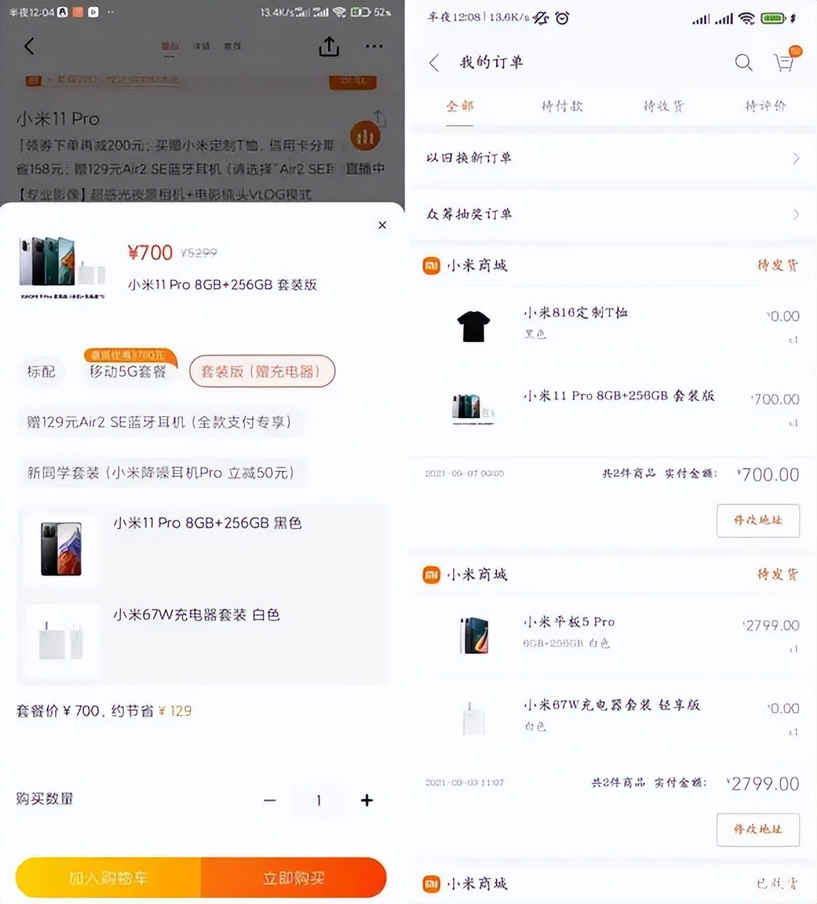 而且同样离谱的是,本来 BUG 价 700 的小米 11 Pro 8+256GB 套装版,竟然还能再便宜。
