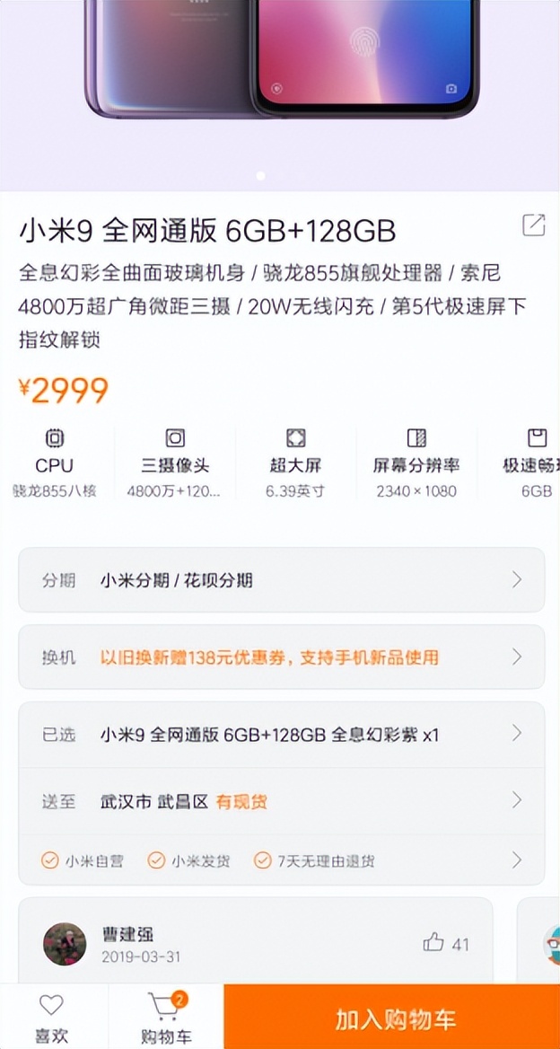 相比之下,当时抢购火爆的小米 9 ,同样是商城 BUG ,就没这么离谱…
