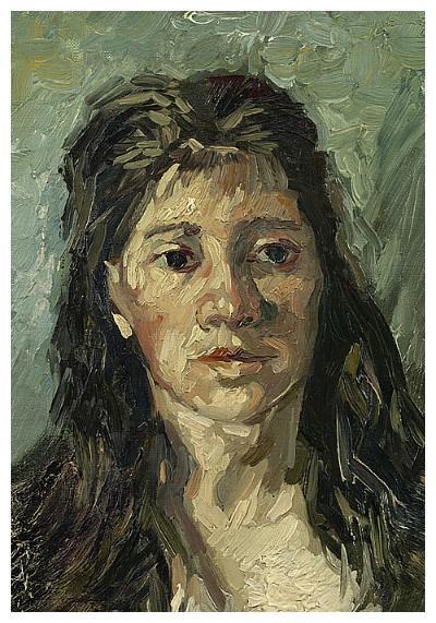 就比如拿梵高的《妇女头像》一画来说,梵高在其上的笔触是非常显眼的,然而我们的眼目会忽略那些笔触,首先从整体上去认识所有笔触的总和,那个妇女。