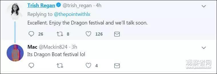但由于翠西将端午节英文(Dragon Boat Festival)写错,错打成“龙节(Dragon Festival)”,还被网民抓包。有人随即向她纠正:“是端午节!”