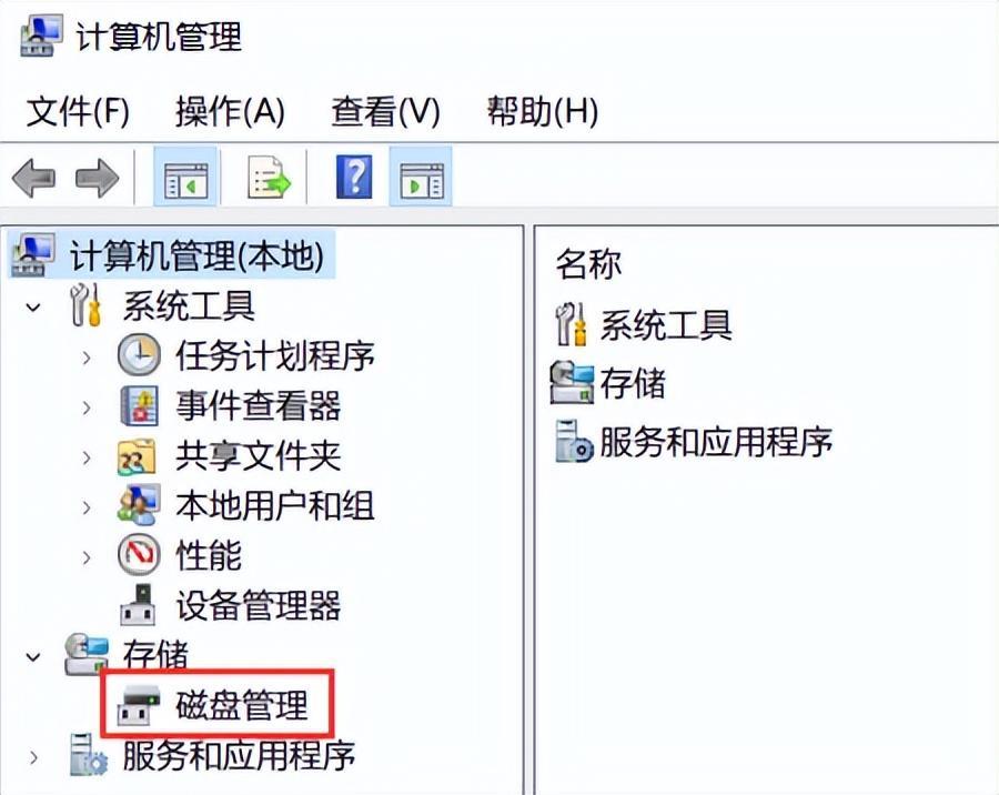 步骤1:点击电脑桌面上的 【控制面板】,找到【管理工具】中的【计算器管理】,然后点击左侧的【磁盘管理】。