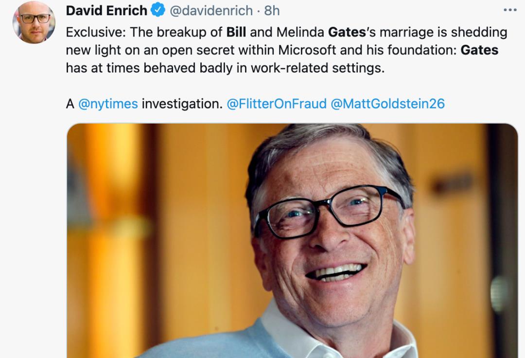 接下来让我们一起来看一个时下比较热的话题 #比尔盖茨离婚#