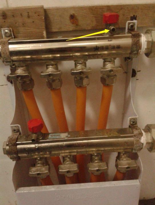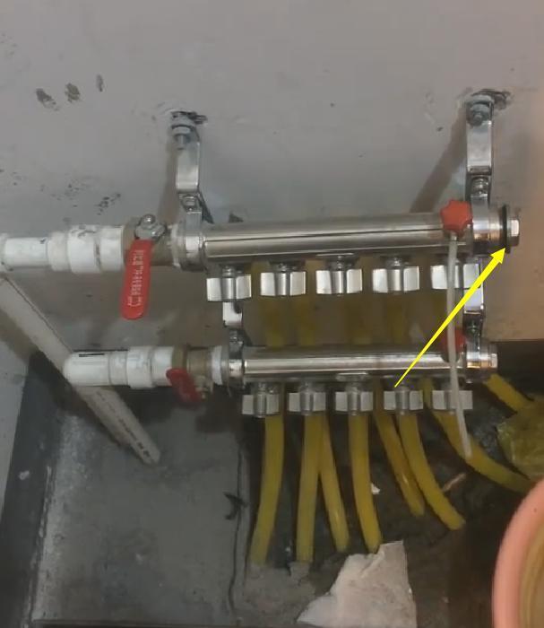 5、 按顺序给每个分水管进行放水,直到集水器每个分水管出口都有热度就可以结束放水了,最后把螺丝拧上就可以了。