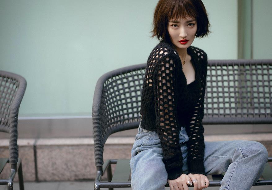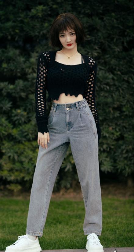 因此这一次的短发造型还是蛮让人惊艳的,短发搭配红唇,身穿黑色镂空上衣以及牛仔裤复古又俏皮,颇有些《这个杀手不太冷》中小女孩的味道,你们觉得怎么样呢?