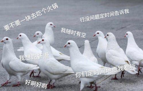 国庆长假,难免要和亲朋好友聚一聚,但是,总是免不了会被放鸽子,或者放别人鸽子,所以,小编未雨绸缪,为大家准备了一组放鸽子表情包,希望大家可以用到。当然,如果这一组鸽子表情包放给你了,那就要好好考虑一下这是不是塑料友情了,真是:这些魔性的鸽子表情包,让我在国庆假期看透了塑料友情。