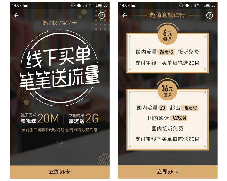 蚂蚁宝卡主打特色——线下买单每笔送20M流量