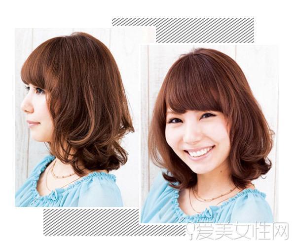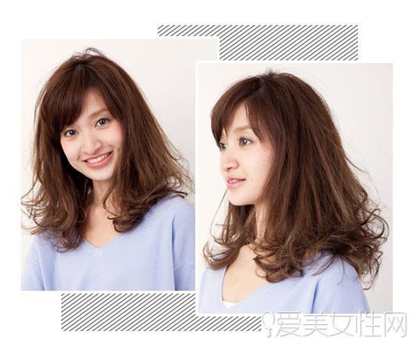这款栗色头发,发尾处被电成了蓬松飞扬的小卷曲,造型感突出,瘦脸效果也是妥妥的,配合内卷的斜刘海给人感觉相当可爱。