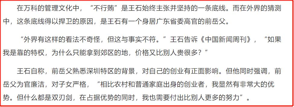 有人说,王石之所以能坚持住不行贿的底线,是因为他的首任岳父,曾在八九十年代担任过广东省省委副书记、政法委书记……
