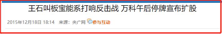 王石高调发声,表示不欢迎。他列出了3个理由:一是宝能系信用不足。二是能力不足。三是宝能系短债长投、循环杠杆,风险非常大,是不留退路的赌博。