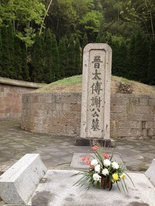 谢安墓前立有一通“无字碑”。有人认为他主持淝水之战,击败了不可一世的符坚及其80万大军,保住了岌岌可危的东晋半壁江山,功比天高,用文字已不足以表达对他的纪念。另有野史说,谢安病危之际,有人问他去世后请谁撰写碑文,谢不语。别人提及陶渊明和王献之,谢也摇头,以至于碑文空缺。清代学者梁绍王说:“谢太傅墓碑无字,丰功伟绩不胜记也。”今也有学者认为谢安的无字碑乃政治原因,因为当时司马家族掌国家大权,非皇族的谢安若被高度赞扬,必遭记恨;若碑文不能实事求是,则愧对谢安在天之灵,且无法向后人交代,口欲言而嗫嚅,无字碑遂成为回避矛盾的产物。