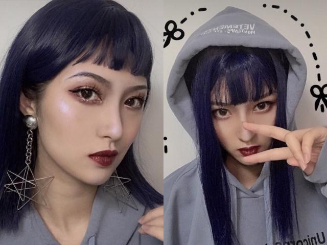 4、如果你还没有染头发的话,一定要认真看看这款发色了,是不是在室内有种是自然黑色的感觉呢?出门还有蓝色的配色,看起来十分的显皮肤,关键还很显嫩,所以喜欢的妹子千万别错过了!