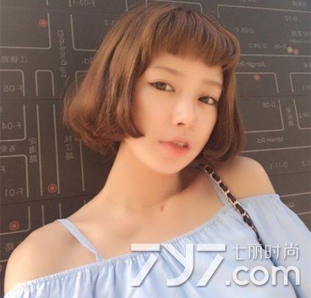 棕红色与微微内扣的短发搭配在一起,果然非常吸睛有魅力,而且也让妹子看起来十分甜美可爱。再画个美美的清新妆容,就可以去浪啦~