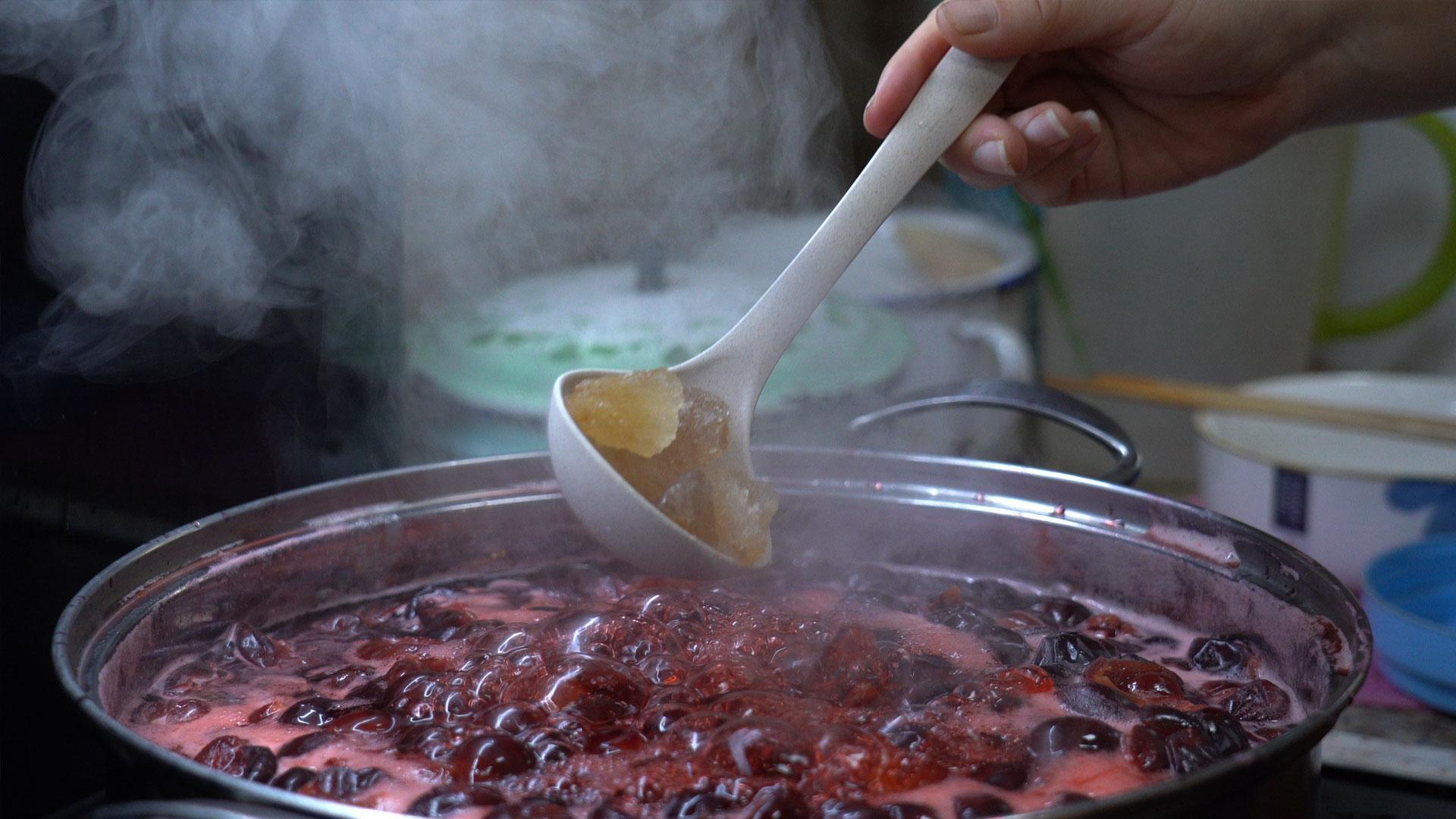 熬制胭脂果果酱8月17日摄