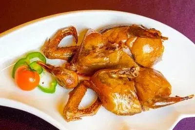 粤菜中的乳鸽也是一道特别有名的菜,在将乳鸽油炸之前,要先用一些秘制的卤汁重新腌制一段时间,然后再用大火烤,这样子做出来的乳鸽不仅好吃而且一点都不肥腻。