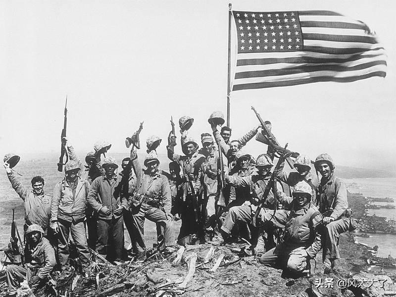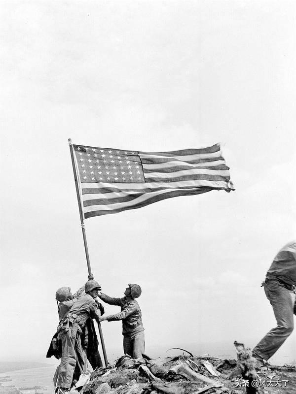 1945年2月23日,美联社33岁的摄影师Joe Rosenthal拍下了这张被刊印次数最多的著名的美国士兵树立国旗照片。一心想从军的Joe Rosenthal曾由于其视力问题吃了闭门羹。