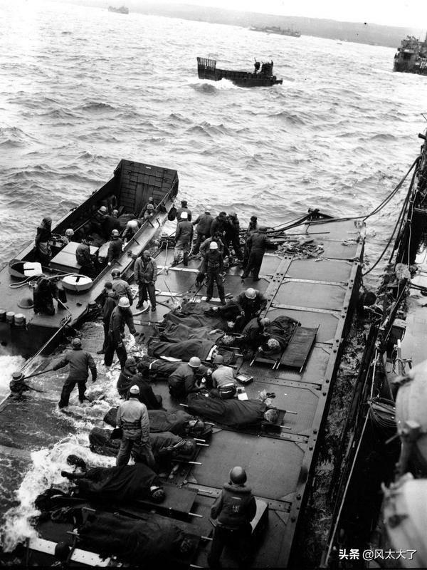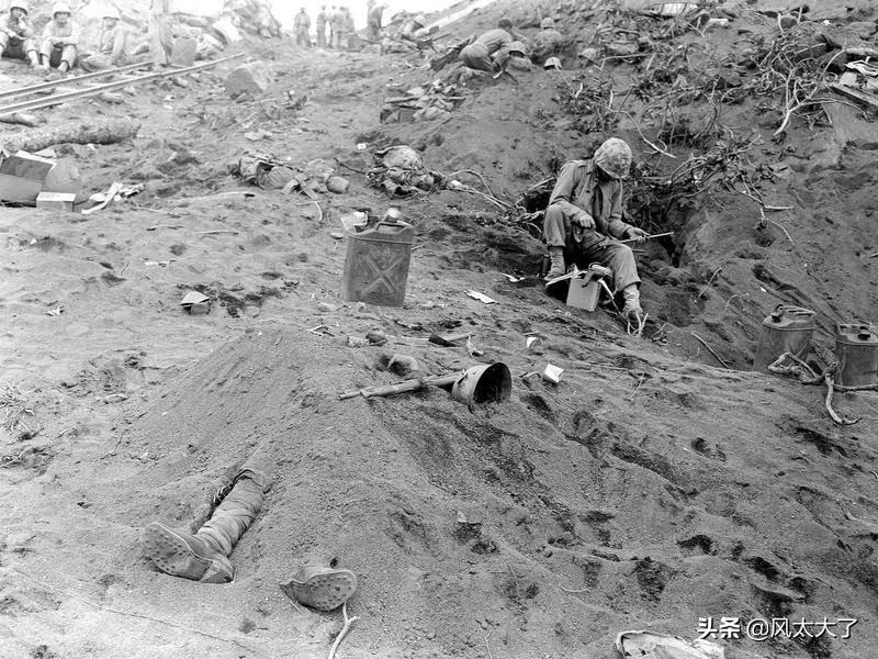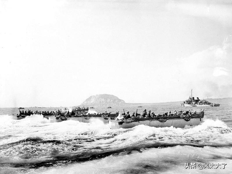 1945年2月19日,海军陆战队第四部队在硫磺岛的沙滩上。