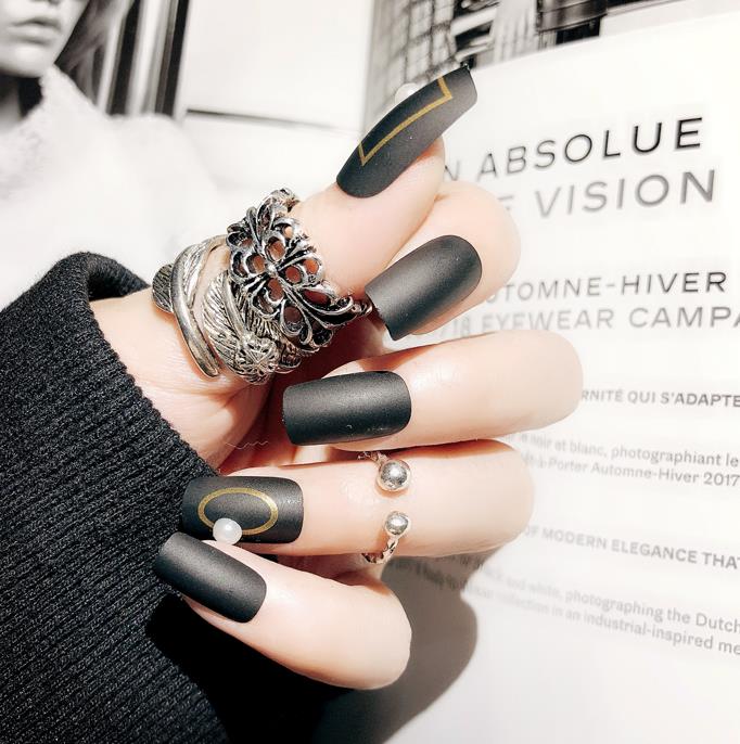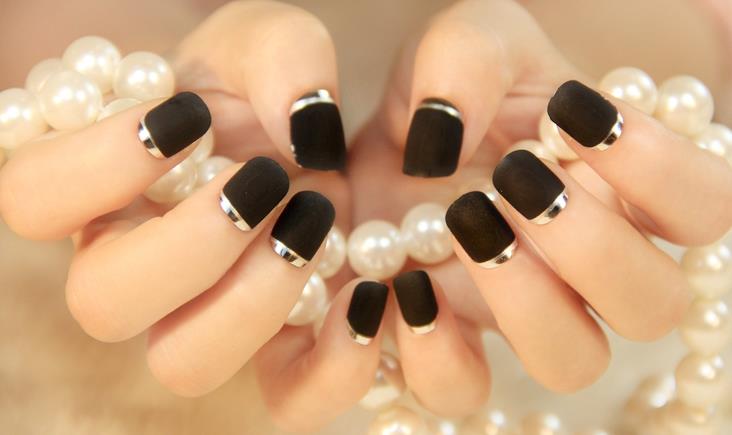黑色金属边的,真的超级有创意了。绝对不会撞款式的一个美甲了!