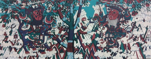 版画可以通过一件油画或者国画作品去创作,也可以在没有油画、国画的基础上单独创作,所以版画也是一个单独的门类。版画是分颜色、分色块,印刷出来的,所以要一层一层的做版,比如十个颜色,就要做十块版,这个版还不是画的,是要做成雕版的,再把这十块板分十次一层一层印刷,最终形成了一张画。印刷的过程中要也把颜色套准,位置套准,所以这个过程很复杂,做一幅版画也不容易,花的时间和工时也是很多的,版画的价值也在这里。