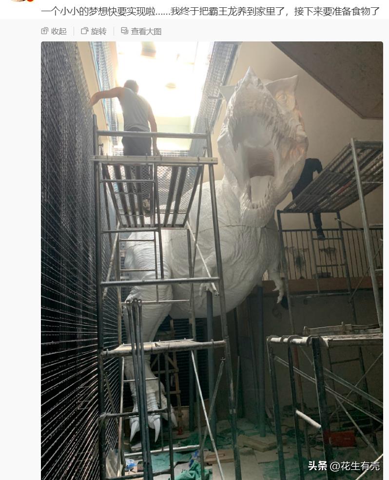 这哥们还会玩各种高科技产品,会造机器人,甚至还通过自己研究的史学资料,1:1还原出“霸王龙”···
