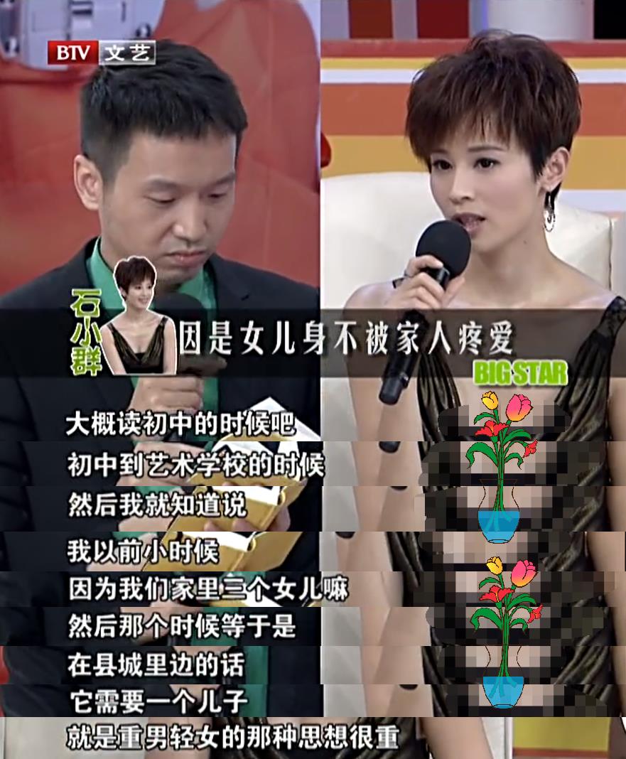 1980年,石筱群出生在浙江浦江的一个小县城里,当时家里重男轻女的观念比较强,而她上面又有两个姐姐,她的二姐叫石东方,取这个名字就是家里人期盼下一胎能生个男孩,但她的出生,让他们失望了,因此她还险些被抛弃。