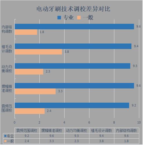 市面上大部分的知名品牌,都只能满足消费者的显性需求,比如高震频、高颜值、配色多等方面,再通过大量的营销,收割韭菜。但在护龈护牙体验、震频范围、人群兼容性匹配度、长期衰减度以及偏差值等百项核心调教参数上,仍和专业品牌相差甚远,例如舒适度,二者就有八倍还多的差距!