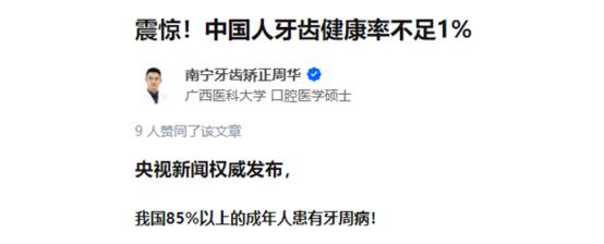 电动牙刷怎么挑选?上文为大家讲解了选购技巧,希望大家能够重视起来,因为选错电动牙刷会造成严重的伤牙后果。要知道我国的牙齿健康率不足1%(如下图),国人的口腔耐受度低,再加牙病中早期几乎每症状,不痛不痒,让很多人错误判断自己的口腔状态,还以为牙齿很好,此时如果错误选择不专业的电动牙刷很容易引起伤牙弊端: