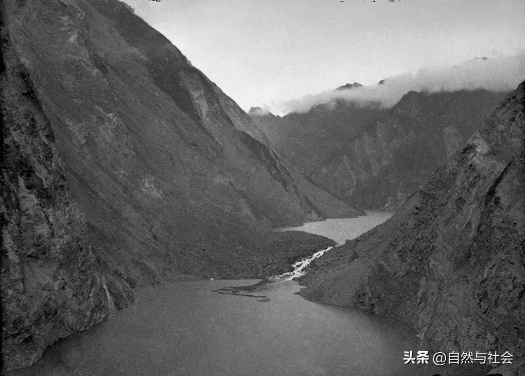 叠溪大地震四周山峰崩塌,堆积体阻塞岷江,形成堰塞湖(庄学本摄于1934年)