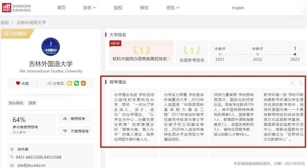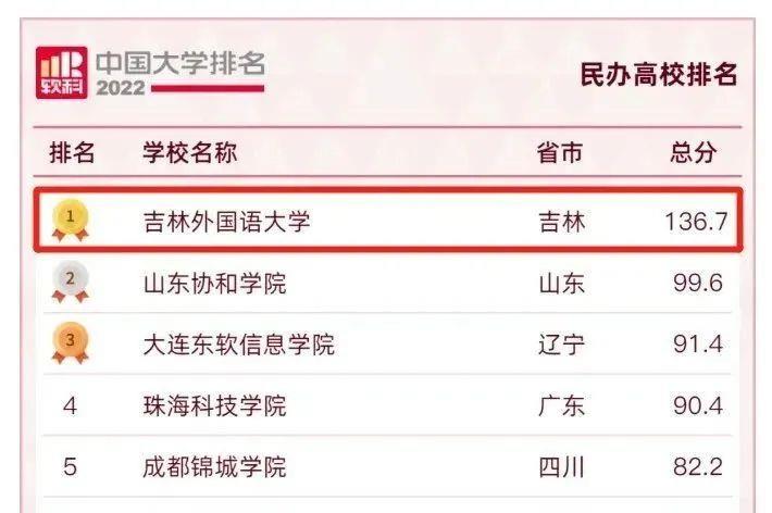 在2020、2021、2022软科中国民办高校排名中,吉林外国语大学实现三连冠。