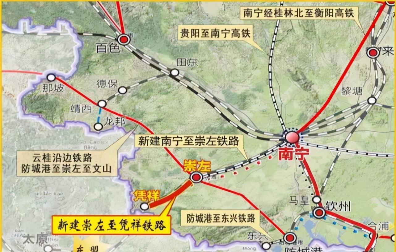 崇凭高铁从崇左南站引出,途经宁明东站、龙州站,最后到达凭祥东站。从工期来看,这条高铁会在2025年建成通车。