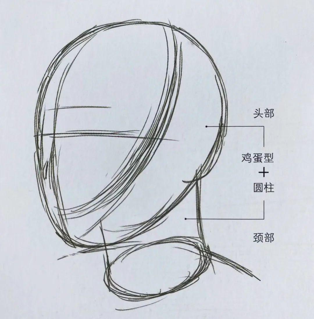 ②使用基准线来确定头的构造,把握形态。