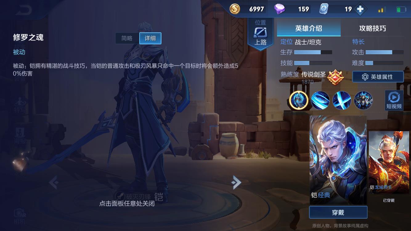 凯这个英雄对于新手来说上手还是相当快,既能打出高额伤害,还可以在开启大招是充当肉盾(前提是出一两件防御装),在各个分段排位赛中凯的上分能力还是相当可观的。