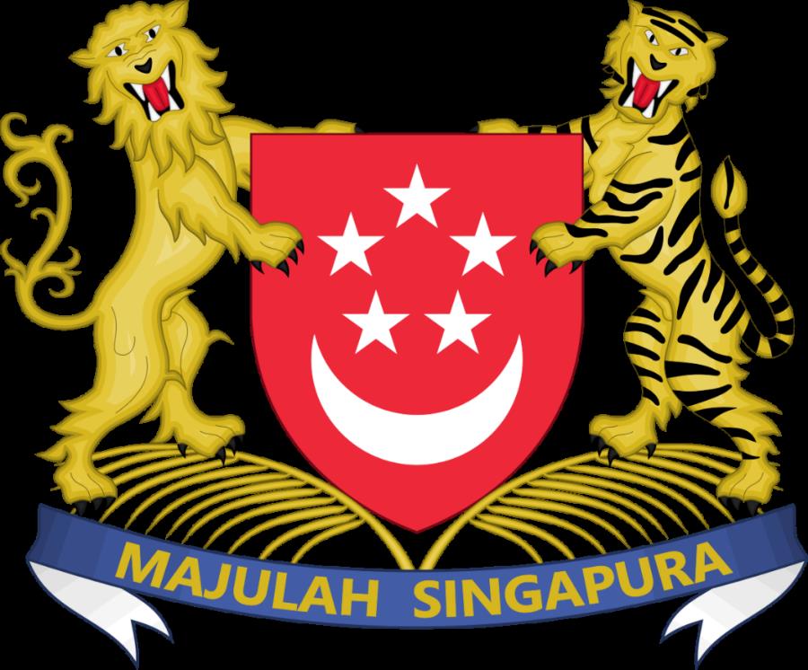 国徽包括盾徽、狮子、老虎等图案。盾面是红色的,镶有白色的新月和五角星,寓意与国旗相同。盾的左侧有一只狮子,他是新加坡的象征。右侧有一只老虎,象征着新加坡与马来西亚之间的历史联系。盾的下方有金色的棕榈枝,蓝色的饰带上用马来文写着“前进吧,新加坡!”
