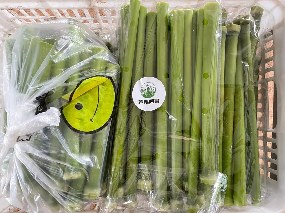 “一般的芦粟吃起来很快,然后又要开始新的一轮剥皮,总觉得不过瘾,要是一节能长点就好了。”竖新镇捷农蔬果专业合作社的负责人抱着这样的想法,杂交培育出了现在合作社大规模种植的芦粟品种,一节能有成人手臂长,此外该品种生长周期也较短,只需70天就能长成收割,糖度也十分惊人,可以达到20多度。合作社精选匀称细长的芦粟段,这个时节在抖音上直播,往往供不应求,极受欢迎。