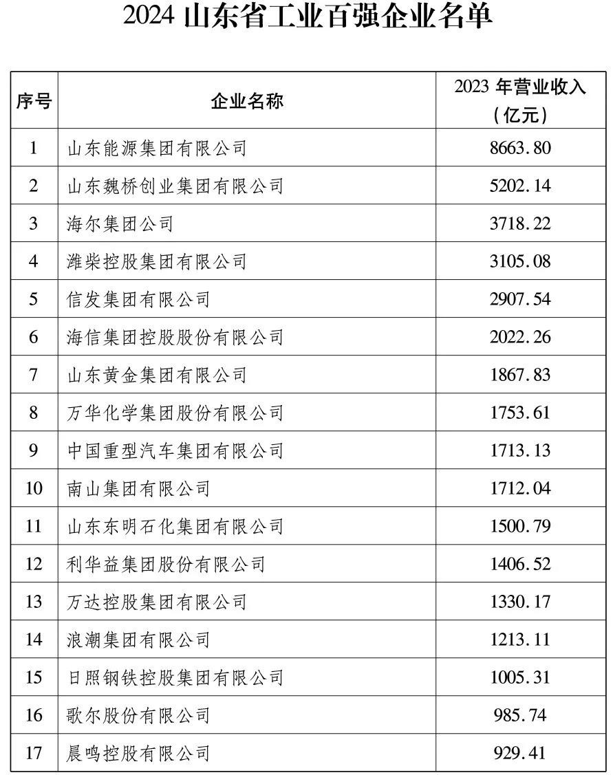 2024山东百强企业出炉,全名单来了!