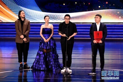 9月26日,影片《流浪地球》的导演郭帆获得最佳导演奖,这是颁奖仪式现场。 当日,第35届大众电影百花奖颁奖典礼在河南郑州举行。 新华社记者 朱祥 摄