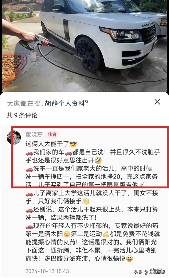 夫妻俩虽然不差钱,但董晓燕却说,家里的洗车任务,一直都是由儿子完成,但现在儿子已经上了大学,女儿又不愿意干,只能由夫妻俩自己干了,看两人擦得卖力娴熟又认真,想必也是经常干家务活的一把好手了